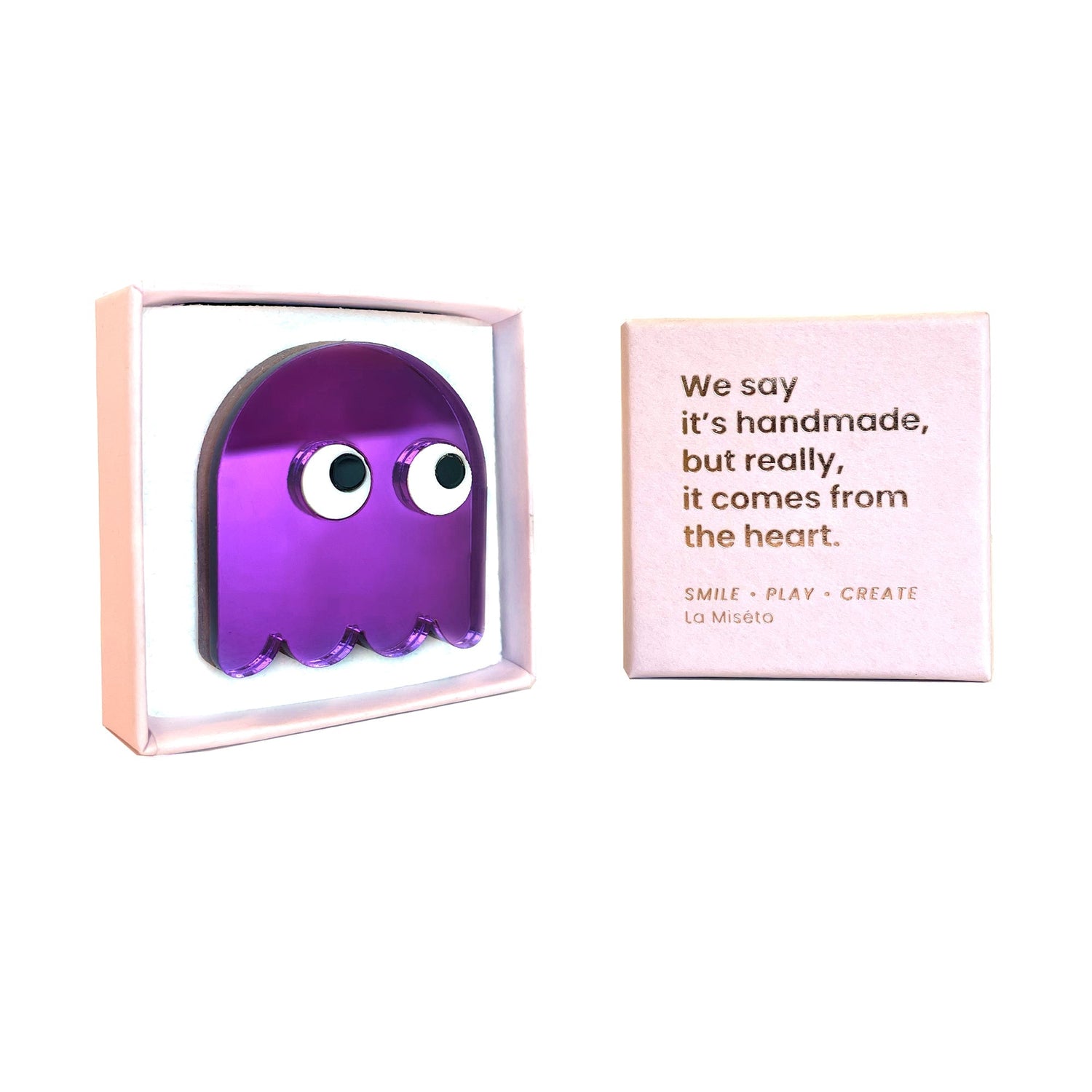 De broches (met een houten achterkant) zitten verpakt in een mooi doosje, we raden je aan je broche daarin te bewaren als je hem niet draagt. De pins zitten niet in een doosje, maar geven je wel een goed excuus om voor een mooi doosje te shoppen :-)